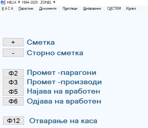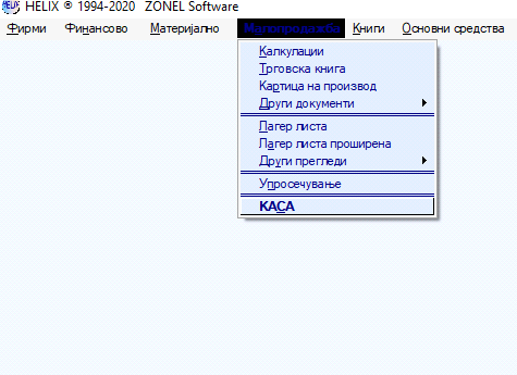 << Кликни за приказ на Содржина >> Навигација: HELIX - Корисничко упатство > Малопродажба > Каса |